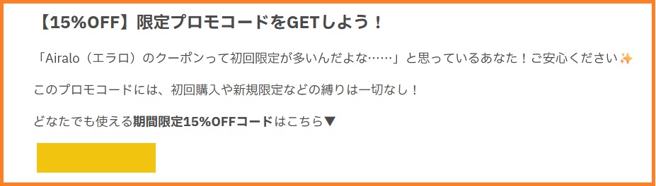 当サイトでは、一般には公開されていない割引コード『新規15%OFF(NEWTOAIRALO15)』『既存10%OFF(AIRALOESIM10)』クーポンを配布中!特定のメディア向けに発行されているもので、それぞれのコードをコピーして当サイトから予約すると適用される。