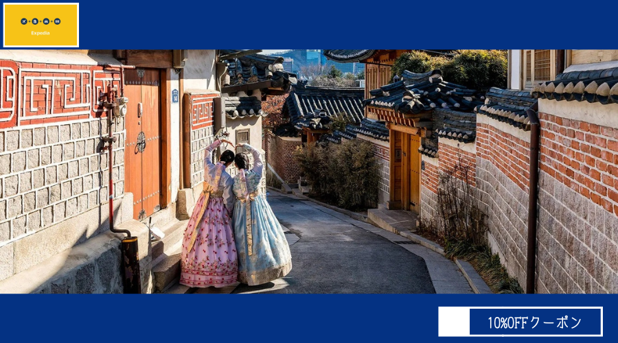 Expediaでは、韓国のホテル向けに『10%OFFクーポン』を配布!ホテルだけでなく、航空券+宿泊セットも対象で、こちらは一律5,000円OFFとなっている。使い方は、下のクーポンページにあるコード(EXPKR...)を入手して、決済画面で入力すると割引が完了する。