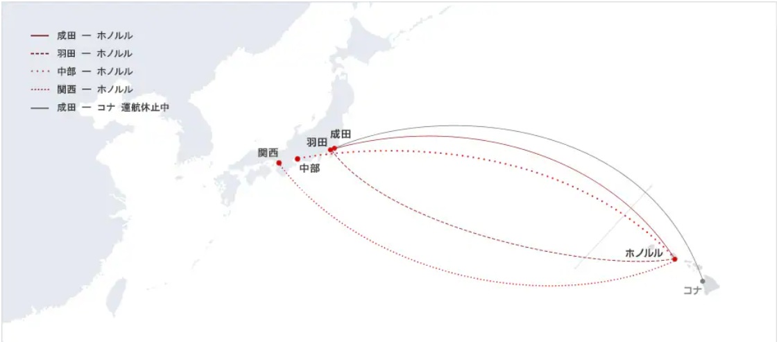 ー東京はANA/JAL/ハワイアン/デルタの4社