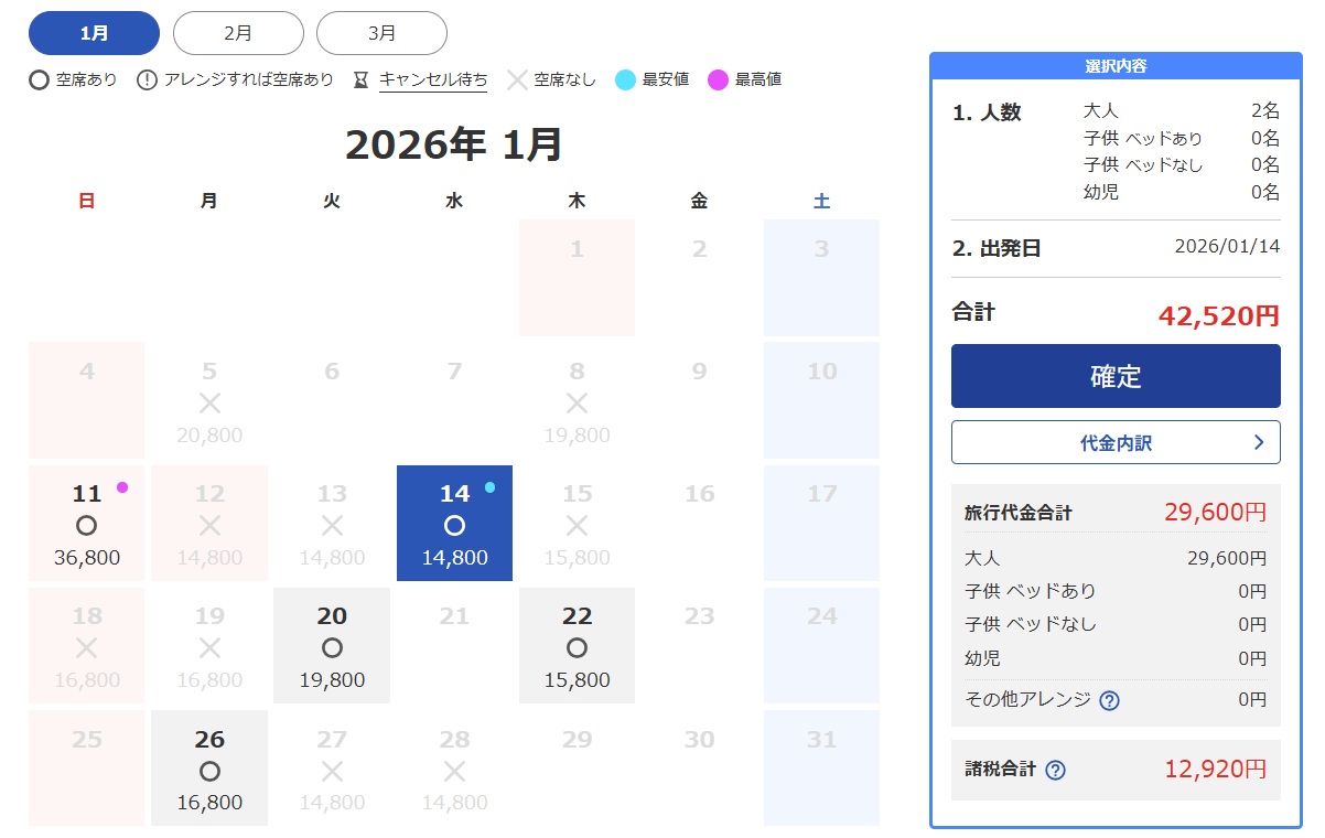 ハワイなどの目玉プランは争奪になり、すぐに売り切れますが、このプランは比較的余裕があったということですね。ただし、それが不人気や割高を意味するものではありません。