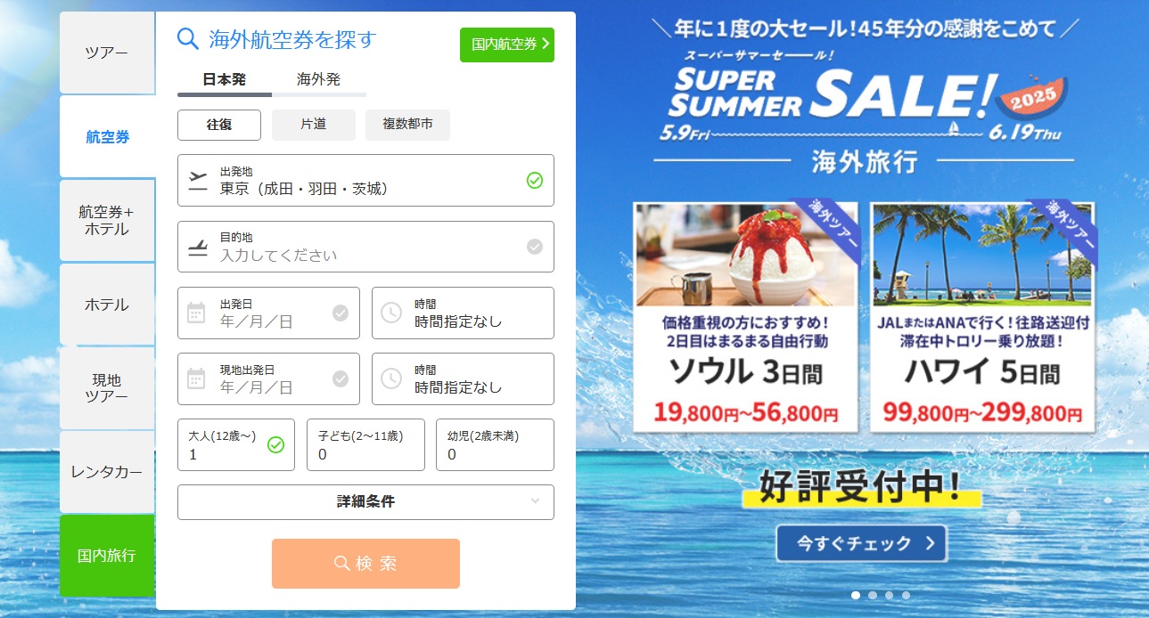 特にスーパーサマーセールは、夏休みの予約に最も適しているので、欧米など高めの航空券を予約するのに使いやすい。現時点で使えるかは、下の最新情報で確認↓