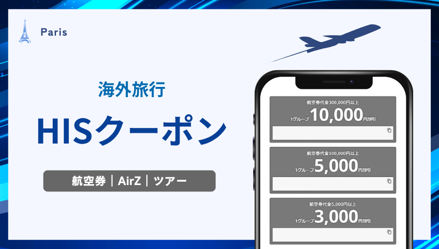 • 【2025年攻略版】HISクーポン!海外航空券3千円&ツアー3万円OFFコード