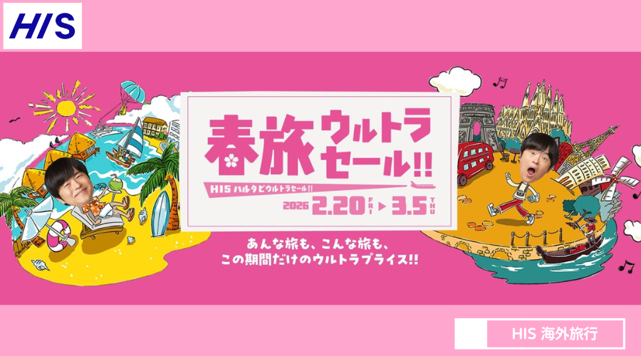 HISでは、年末年始の大型セールとして『初夢フェア2026』を開催!"年に一度の大セール"と謳われえている通り、HIS最大のセールであり、ソウルや台北などの格安航空券から、人気のハワイやオーストラリアツアー、添乗員同行でヨーロッパ周遊など幅広く用意されている。