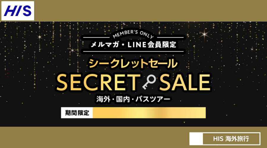 HISでは不定期で「シークレットセール」が開催される。関西発のツアーが対象で、韓国や台湾、香港、タイ、シンガポール、ハワイなどが通常よりも安く販売される。同時にクーポンが出ることも多く、組み合わせれば更に割引も可能。