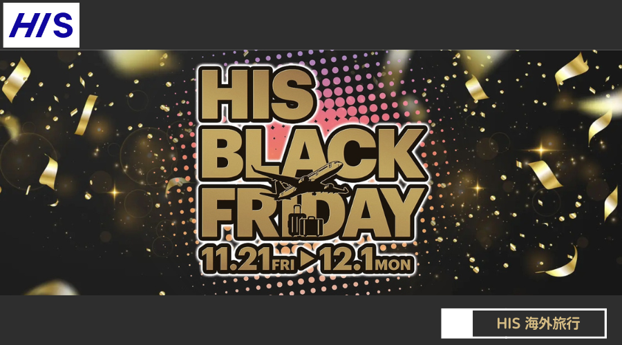 11月の定番セールとなったブラックフライデー。HISでも2024年から大々的に行われており、格安の航空券やツアーが登場し注目を集めている。特に人気のプランは数分で無くなるので、事前に情報を入れておくのは必須だ。次回利用の際は【ブラックフライデー トラベルパリ】で検索。年末年始の旅行に使える注目セールを紹介