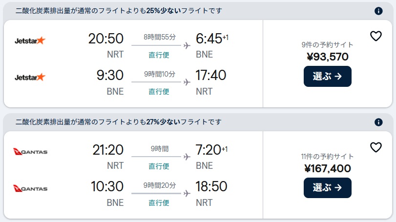 10時間前後のフライトを快適さ込みで考えるなら、カンタス航空の方が断然おすすめです。ジェットスターは、安く行けるメリットはありますが、体力的にきつい・追加料金が意外と高くつく、という声が多いのも事実です。