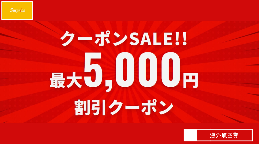サプライス(Surprice)の海外航空券クーポンを紹介。海外旅行がお得になる割引コードで、2,000円や3,000円を中心に、高額な5,000円も配布された過去がある。またキャッシュバックやセールも行われるのでこちらの情報も掲載。いつ配布されるか、どの程度の頻度で配布されるか、使い方などサプライス...