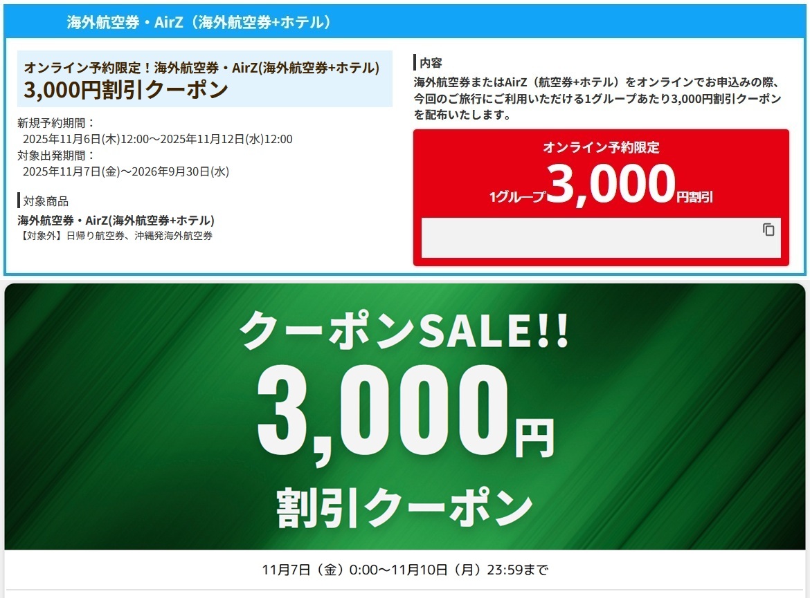 • 【2025年攻略版】HISクーポン!海外航空券3千円&ツアー3万円OFFコード