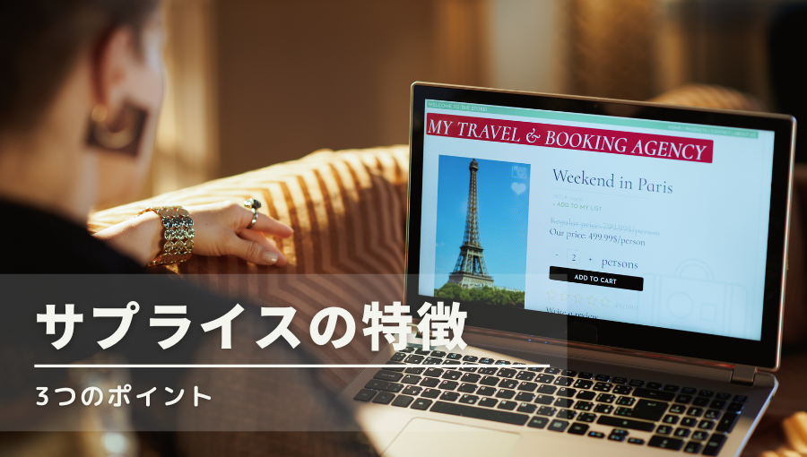 行き先、航空会社、旅行期間全てを自分で決めたい人にサプライスは向いている。ツアーよりもやや上級になるが、1人や夫婦で旅行する場合はこちらの自由な形の方が選ばれる傾向にある。海外なので安全性は最も重要であり、それと価格のバランスが取れたのがサプライスということになる。