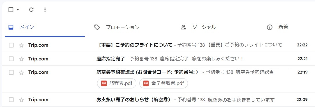 メールもこのように送られてきて、支払いの10分後には航空券予約確認書なるものが届く。ここまで特に不安は感じず、むしろ安心感はかなり高い。ただし、トラブルで稀に見られるのが、出発便が勝手に翌日に変えられるなる口コミで、それが起こる可能性が捨てきれないのは怖い部分ではある。