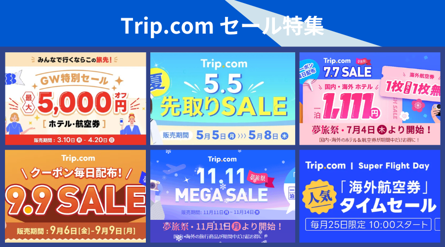 • Trip.comのセール特集!次回はいつ?メガセール・夢旅祭・海外航空券タイムセール